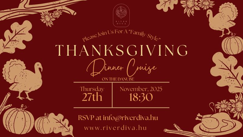 Celebrate Thanksgiving aboard the beautiful River Diva with a warm, family-style evening on the Danube! Enjoy a festive buffet dinner filled with traditional holiday favorites — roasted turkey, creamy mashed potatoes, sweet and savory sides, and delightful desserts.